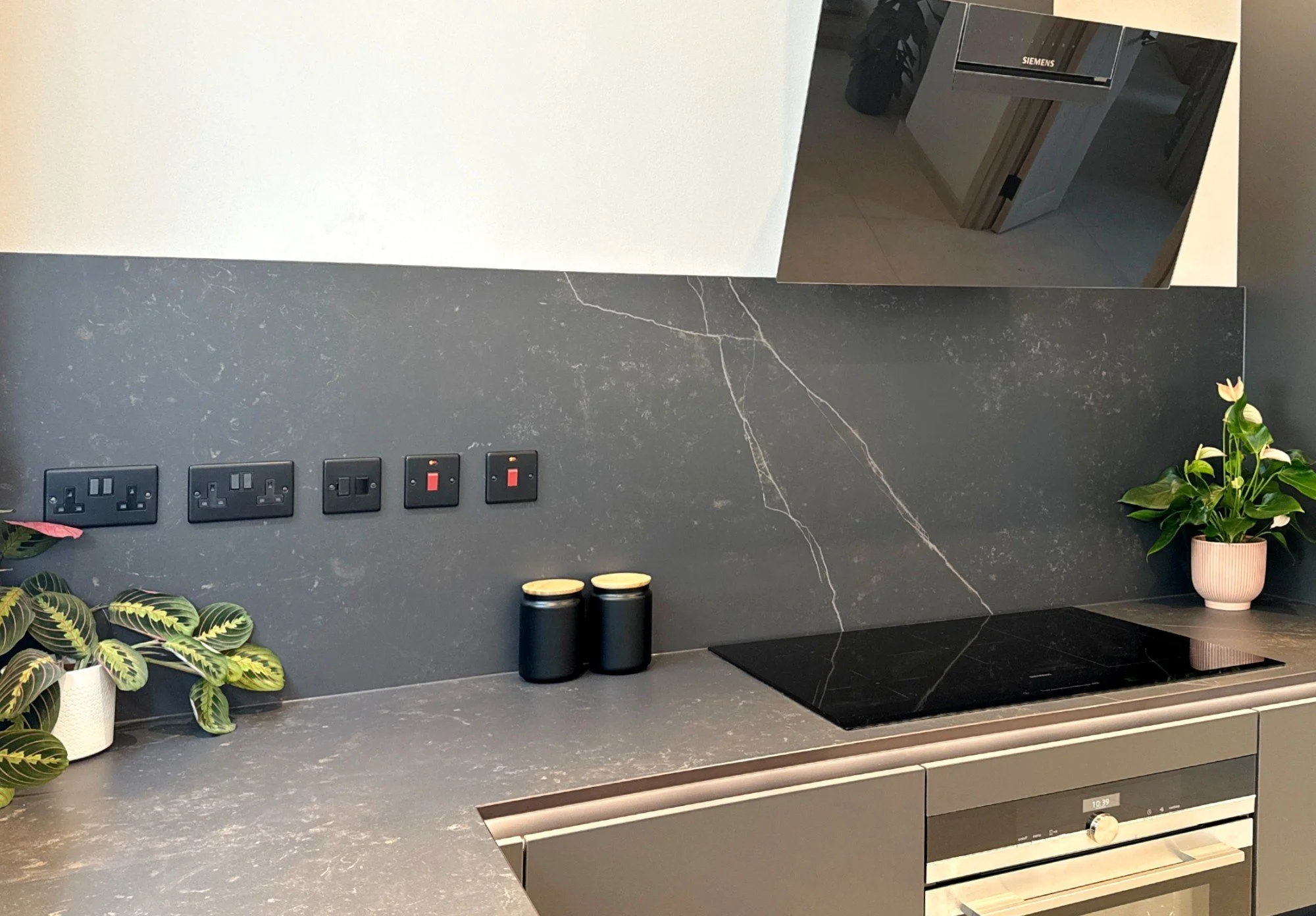 Tiles are stepping aside as slab splashbacks take the spotlight. Using one continuous surface from worktop to wall creates a seamless flow that feels calm, modern, and incredibly easy to maintain.