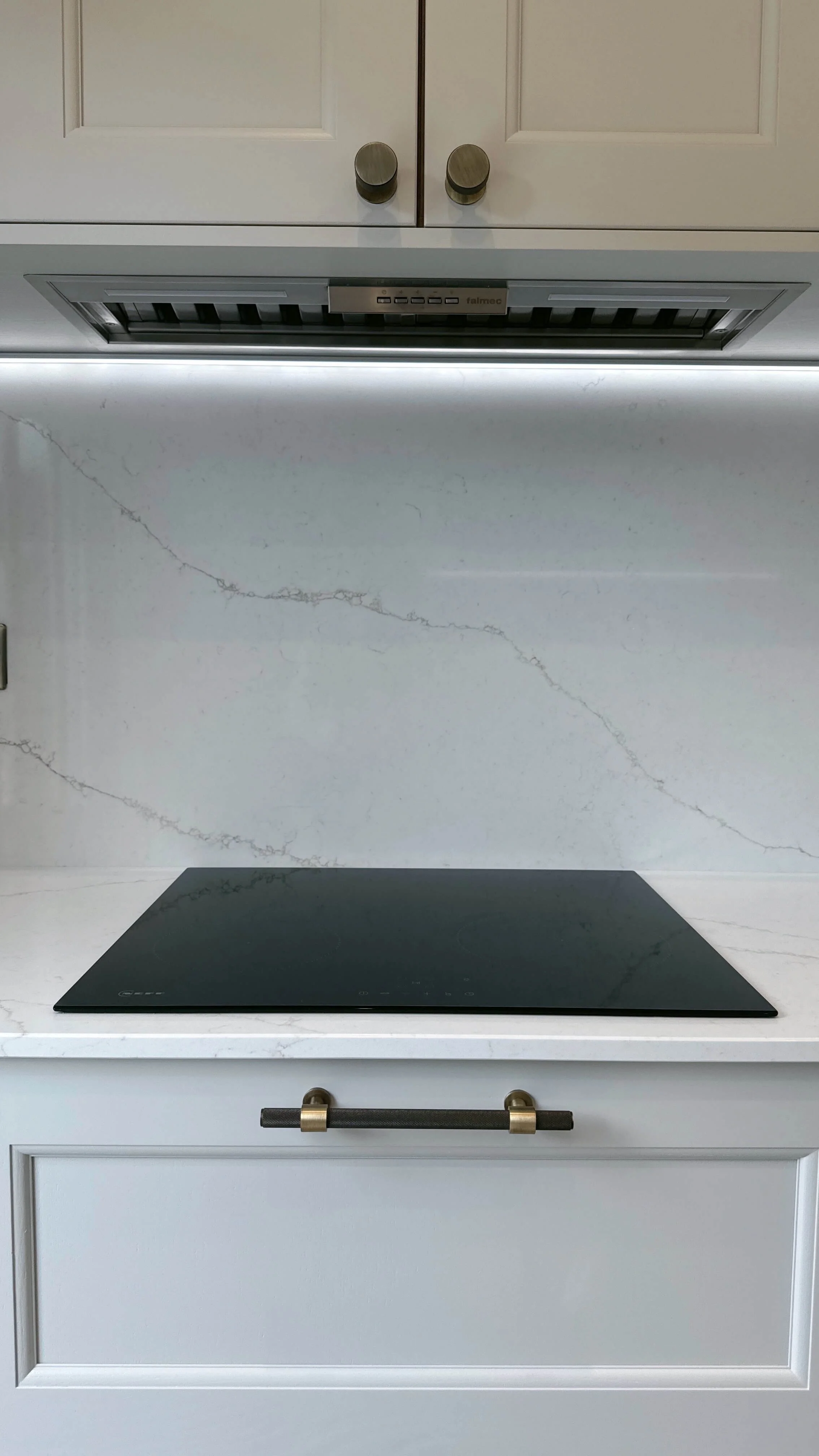 Appliances are by NEFF, chosen for their seamless integration and reliability, while a Falmec extractor ensures powerful performance with minimal noise, keeping the space fresh and uncluttered.